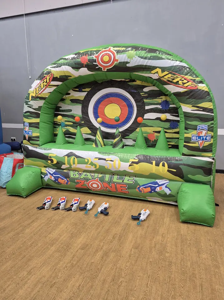 • Large Inflatable Target: A high-visibility, camo-themed nerf inflatable target that stands out at any venue.