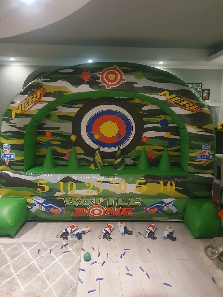Are you looking for a way to take your party to the next level? Our inflatable Nerf shooting gallery is the ultimate addition for fans of high-energy nerf gun games. This isn’t just a backdrop—it’s a professional-grade nerf inflatable target featuring hovering ball targets kept aloft by constant airflow. It’s the perfect way to test your skills and crown the champion of the range!