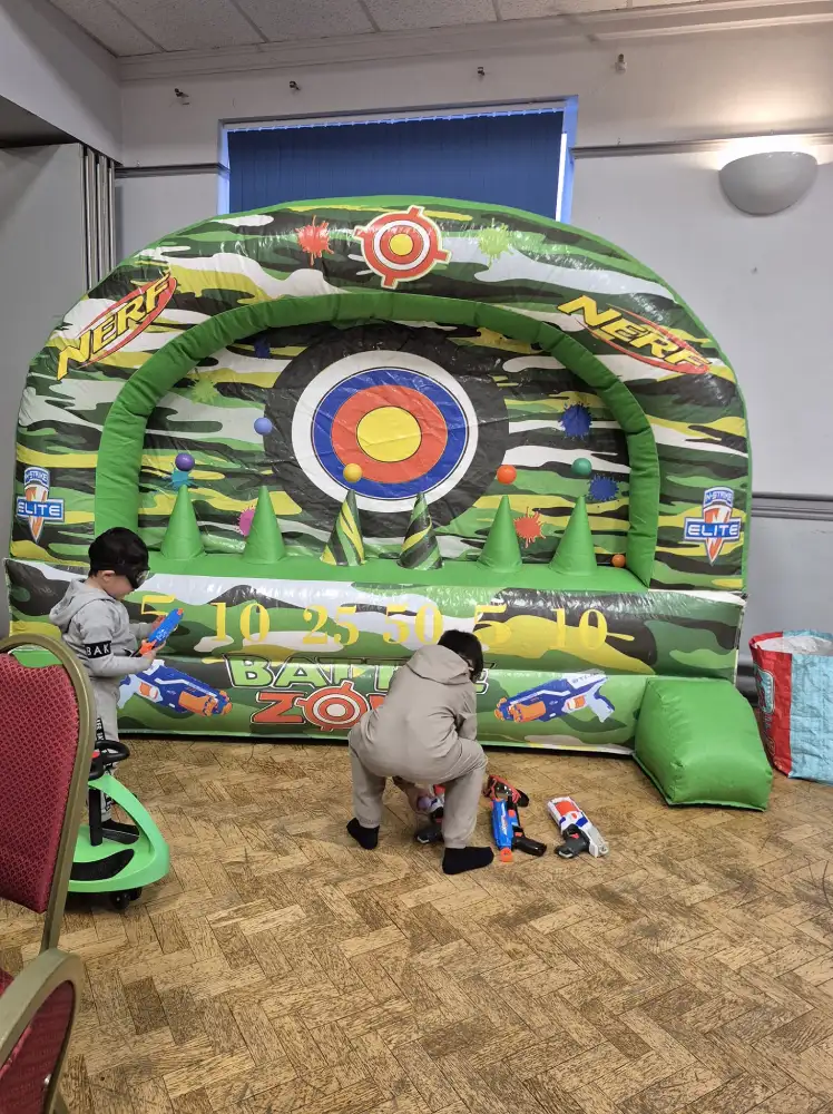 Get Ready for the Ultimate Battle! Rent Our Inflatable Nerf Target! 🎯 Turn any backyard or hall into an action-packed arena! Our nerf inflatable target is the perfect centerpiece for any event. This rental includes 4 high-quality dart blasters and a massive supply of foam darts to keep the action moving. Whether it’s a nerf war birthday party or a fun community event, this safe and dynamic attraction is guaranteed to be a hit. Aim, shoot, and score!